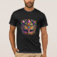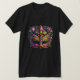 This men's t-shirt is shown in black with a fancy Mardi Gras mask art print.