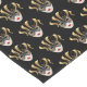This table runner is shown with a black background colour with a festive Mardi Gras festival mask print design.