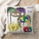 20” x 20” throw pillow with an image of four colourful Mardi Gras masks adorned with bright feathers, sequins and glitter on white. Optional text. Purple back. See the entire Mardi Gras Pillow collection in the DECOR | Pillows section.