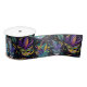 Introducing our stunning Mardi Gras-themed satin ribbon, designed to infuse your gifts with the vibrant spirit of celebration. Against a dramatic black backdrop, an array of Mardi Gras masks takes centre stage. Each mask, in lively turquoise, regal purple, and brilliant golden yellow, exudes an air of mystique and opulence, capturing the essence of the festive occasion.