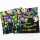 Customise both the front and the back of this Marid Gras Masquerade party invitation, The front features a vibrant masquerade ball mask and matching Mardi Gras beads in the background. The reverse of the card features the Mardi Gras mask and beads and leaves room for personalisation of your party information. Change the font, style and colour of the font to match your party vibe. Enjoy your festivities!