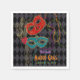 These Mardi Gras party napkins feature red and turquoise masquerade masks decorated with feathers and beads on a background of grey and black harlequin. Personalise with a name and date. Designed by world renowned artist Tim Coffey.
