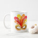 This coffee mug is shown with an image of a festive Mardi Gras mask with Text of "Let the good times roll'.