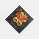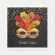 This standard luncheon size paper napkin is shown with a festive Mardi Gras carnival mask print on a black background colour.