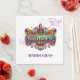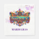 This paper napkin is shown in a festive Mardi Gras celebration print.