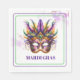This paper napkin is shown in a festive Mardi Gras mask celebration print.