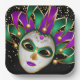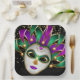 This paper plate is shown with a festive Mardi Gras carnival mask print.