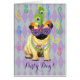 Cute Pug puppy, dressed in festive feather mask and beads, ready for fun on Mardi Gras or at any other time. Great gift for yourself and your Pug-loving family and friends.