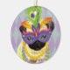 Cute Pug puppy, dressed in festive feather mask and beads, ready for fun on Mardi Gras or at any other time. Great gift for yourself and your Pug-loving family and friends.