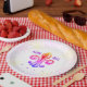 Mardi Gras Rainbow Fleur De Lis with Confetti Paper Plate