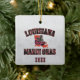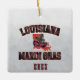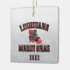 A colofrul Mardi Gras ceramic ornament in bright colours spelling the word in bright red and black