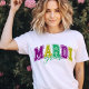 Celebrate in style and spread the excitement of Mardi Gras with our "Mardi Gras" graphic tee. It's more than just a shirt – it's a statement piece that captures the essence of this beloved holiday. Get ready to immerse yourself in the magic of Mardi Gras with our standout design.