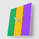 Mardi Gras Stripes Pattern Green Yellow Purple Square Wall Clock