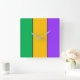 Mardi Gras Stripes Pattern Green Yellow Purple Fat Tuesday Carnival Party Colourful Decor Square Wall Clock