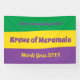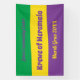 Mardi Gras parade or event banner with green, yellow, and purple stripes and your custom text on each line.