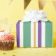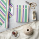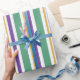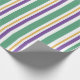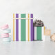 A clean and elegant pattern featuring vertical stripes in alternating purple, green, and gold tones, symbolising the festive colours of celebration.