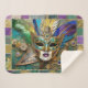 Mardi Gras Third Eye Gold Ceramic Feather Mask Sherpa Blanket
