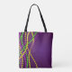 This tote bag, covered in purple with Mardi Gras beads on it, is just the thing to carry your parade goodies.