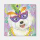 Cute West Highland White Terrier, dressed in festive mask, jester hat and beads, ready for fun on Mardi Gras or at any other time. Great gift for yourself and your Westie-loving family and friends.