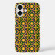 iPhone 16 case with seamless pattern with fleur-de-lys (lily flowers) in the colours of New Orleans Mardi Gras; purple, golden, and green design