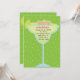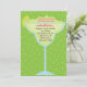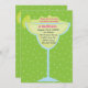 Start your celebration off right with this trendy invitation. Whether it's a backyard barbecue or just cocktails this is the perfect invite for you! It has a green background with lime green small polka dots. There's a large margarita glass full of drink with a piece of lime on the glass. Check out the many other designs and products in this line. ©JW Illustrations