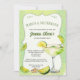 Celebrate your bachelorette party or hen do with margaritas. This fun invitation features a watercolor image of a classic margarita with lime wedges scattered around the invite. The frame contains the information against a green watercolor speckle pattern background. A pair of wedding rings brings the point of the celebration home. It makes a bachelorette party or a hen night one to remember. Available with matching products.