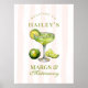 Celebrate love and laughter with our Margs & Matrimony Lime Margarita Bridal Shower Welcome Sign! Featuring light pink stripes, vibrant limes, and a whimsical margarita design, this welcome sign sets the perfect tone for a fun and festive bridal shower. The fresh color palette and playful theme bring a lively, celebratory vibe to your event. Customize with your party details to create a one-of-a-kind welcome sign your guests will adore. Raise a glass and toast to the bride-to-be with this charming design!