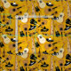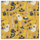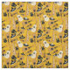 Fun Mariachi band pattern on golden yellow background. The pattern features guitars, violins, harps, trumpets and sombreros.