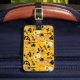 Fun bright luggage tag printed with a cool Mariachi band pattern. The pattern features Mariachi band instruments including violins, harps, guitars, and trumpets. Also includes Sombrero hats.