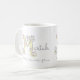 Decorative hand drawing of a capital M letter with your name and meaning mug. Pretty heart and flower doodled design and the words Mariah Wished for beloved star of the sea. © Unique art design and name meaning description by Sarah Trett. www.sarahtrett.com for www.mylittleeden.com on zazzle