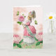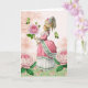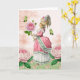 Marie Antoinette stands in a pink landscape with a beautiful rose. A Rococo lady in pink is featured on this card. A Victorian style card that is perfect for a birthday, thank you or any occasion.