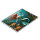 “Marielle” – Beautiful Dancing Mermaid. Aquatic Ballet: In this mesmerising image, a stunning mermaid with flowing red hair dances gracefully on the seabed, her green and blue fishtail sparkling in the water. Surrounded by an underwater garden of fish and coral, she appears to be moving to the rhythm of gentle aquatic tunes. The scene, filled with subtle multi-coloured hues, captures the serene, flowing beauty of this stylised Pre-Raphaelite art. Have you ever seen a mermaid dance so elegantly in the deep blue sea?