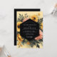 A dramatic and moody botanical design featuring a stunning contrast of light and dark. Luminous marigold poppies and soft blush pink peonies bloom against a backdrop of deep charcoal foliage. The painterly, watercolor style creates an atmosphere of artistic romance for your special day. This elegant arrangement evokes a sense of twilight beauty.
