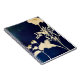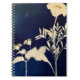 Artist-made cyanotype print of gilded marigolds on a blank spiral notebook.