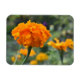 Features an original colour nature photograph of an orange marigold flower blooming in a garden in New York City's Riverside Park.