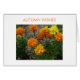 Nature floral photography, of Marigolds in bright hues, and an Autumn greeting adorn this card