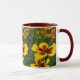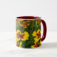 Yellow marigold flowers. Looks good with the red rim or black rim.