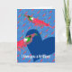 Red Krill swimming in blue ocean with a blue heart. Words: I love you a Krillion. Inside words: Happy Valentine's Day to my favourite Marine Biologist.