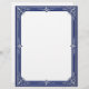 Beautiful, elegant, and classy, this letterhead paper has a silver art deco frame on a marine blue background. Perfect for correspondence, invitations, and flyers.