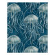 Marine Blue and White Jelly Fish Pattern Poster