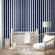Marine Navy and White Vertical Striped Textured Wallpaper
