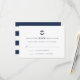 Designed to coordinate with our Maritime nautical wedding invitation collections, this coastal chic wedding response card small ship's anchor illustration at the top with elegant navy blue lettering, delicate rope and knot detailing, and a navy and white horizontal striped backer.