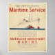 From Zazzle's vast collection of Work Projects Administration (WPA) and War posters--an amazing assortment of iconic images designed to promote the arts, public welfare, and patriotism--This commemorative poster print features a poster for the United States Maritime Service offering training courses to members of the American Merchant Marine, showing ship being escorted by tugboats. Created by Richard Halls. Published between 1936 and 1939.