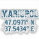 Modern vinyl sticker design with features latitude and longitude coordinates for on taupe background. Mariupol is located on the north coast of the Sea of Azov in southeastern Ukraine.