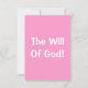 This greeting card showcases a design that features a Hammersmith One print font with white letters dark pink outline featuring the "Mark 10:9" KJV bible scripture verse over a picture displaying a pink back with pink and white flowers placed on top in this faith based theme. This verse is referencing the Book Of Mark 10th chapter showing the 9th verse in this bible scripture quote theme from the King James bible with the words "The Will Of God!" on the back. Made with high quality, full colour printing on a 3.5" x 5" (portrait) or 5" x 3.5" (landscape) matte paper made and printed in the USA.