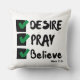 This throw pillow design is based on the Mark 11:24 bible scripture displaying the word "Desire, Pray, Believe" a paint brush stlye print font with black letters and green and black checklist plus bible citation in this KJV faith based quote theme. This pillow is made with high quality simplex knit fabric our pillows are soft and wrinkle-free the cover is machine washable.