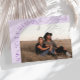 Modern and stylish save the date card featuring a text that says "mark your calendars" along the curved frame photo. One photo in the front and one on the back. The background is lilac.