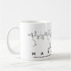 Marleigh spelled out in amino acids as M A R L E I G H (Methionine Alanine Arginine Leucine Glutamic acid Isoleucine Glycine Histidine) on a mug for the scientist in you.