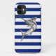 Marlin Swordfish Chrome on Nautical Stripes iPhone 11 Case. Message