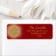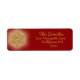 Address labels for holiday greeting cards. Maroon and gold colours, with a gold snowflake on the side. Four text fields for you to edit with your address and other information.